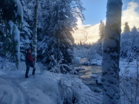 2023-01-15a: Thanks to Dan for a snowshoe trip report, posted on the WTA site. He posted a number of pictures of both River Trail and the snow on Razor Hone. Trip report.