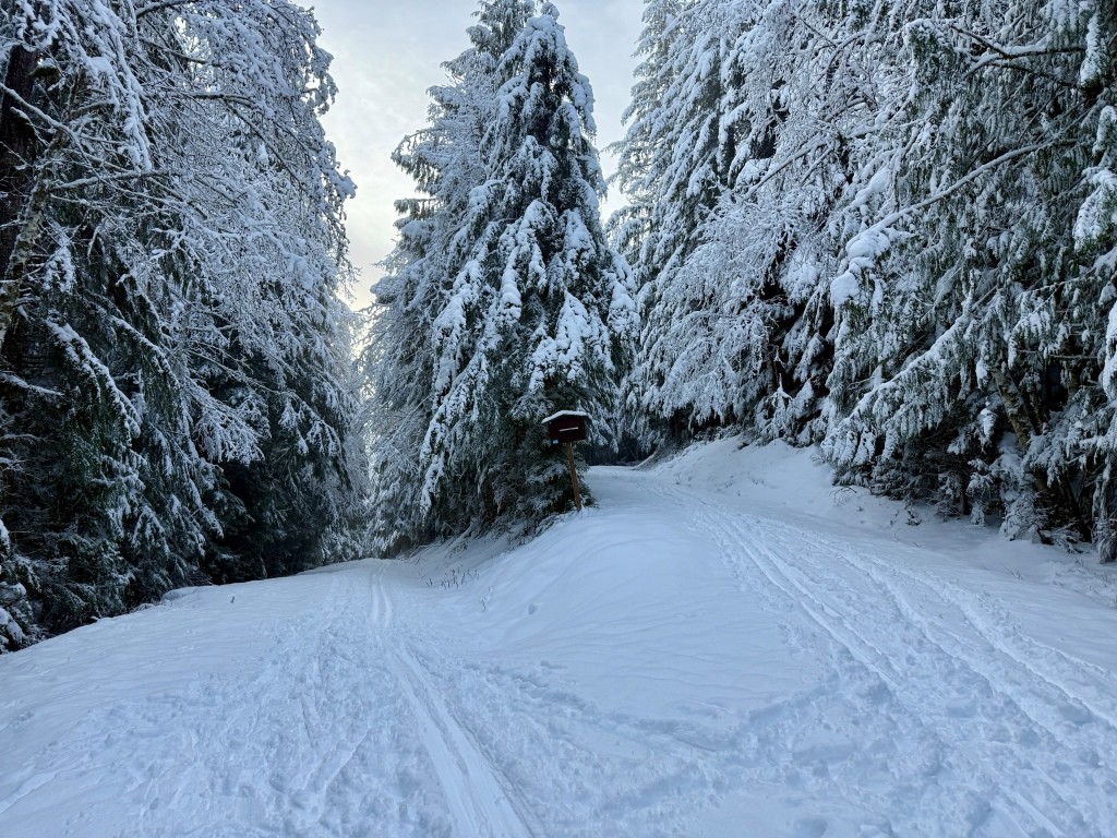 2025-03-12: No pictures, but it’s been snowing! And White Salmon was groomed all the way to the Knob this morning. No ‘on-the-snow’ reports yet, so not sure about classic tracks, and I don’t think the SE extension was groomed. Predictions are calling for significant snowfall tomorrow (Thursday) and tomorrow night, as well as Saturday, so don’t expect to see the corduroy for too long… – Pete