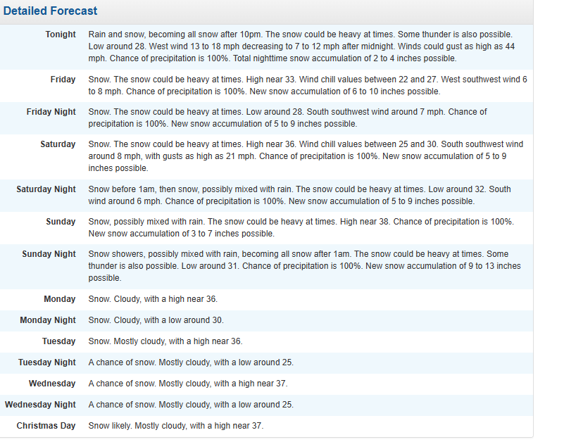 - Weather predictions for Razor Hone: Salmon Ridge 7-day Forecast– This is the site that I use. It seems to match up pretty well in my experience…